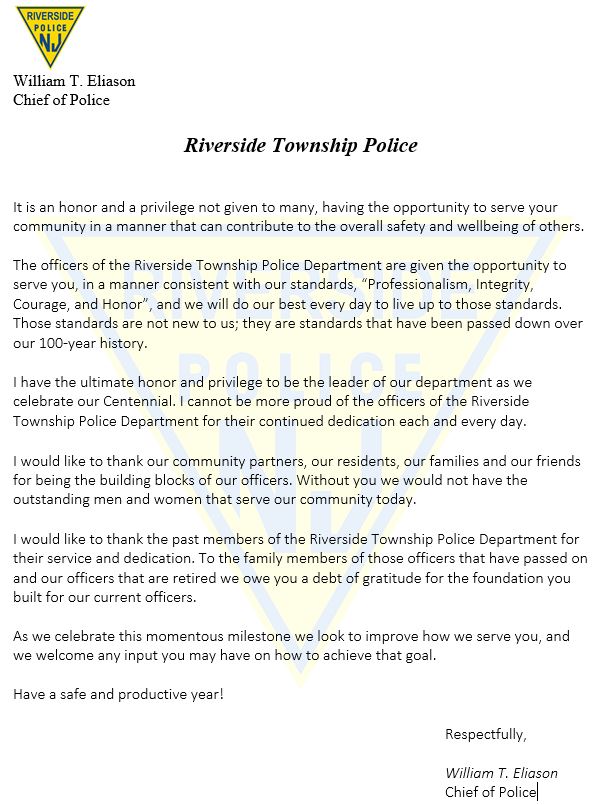 Chief's Centennial Message